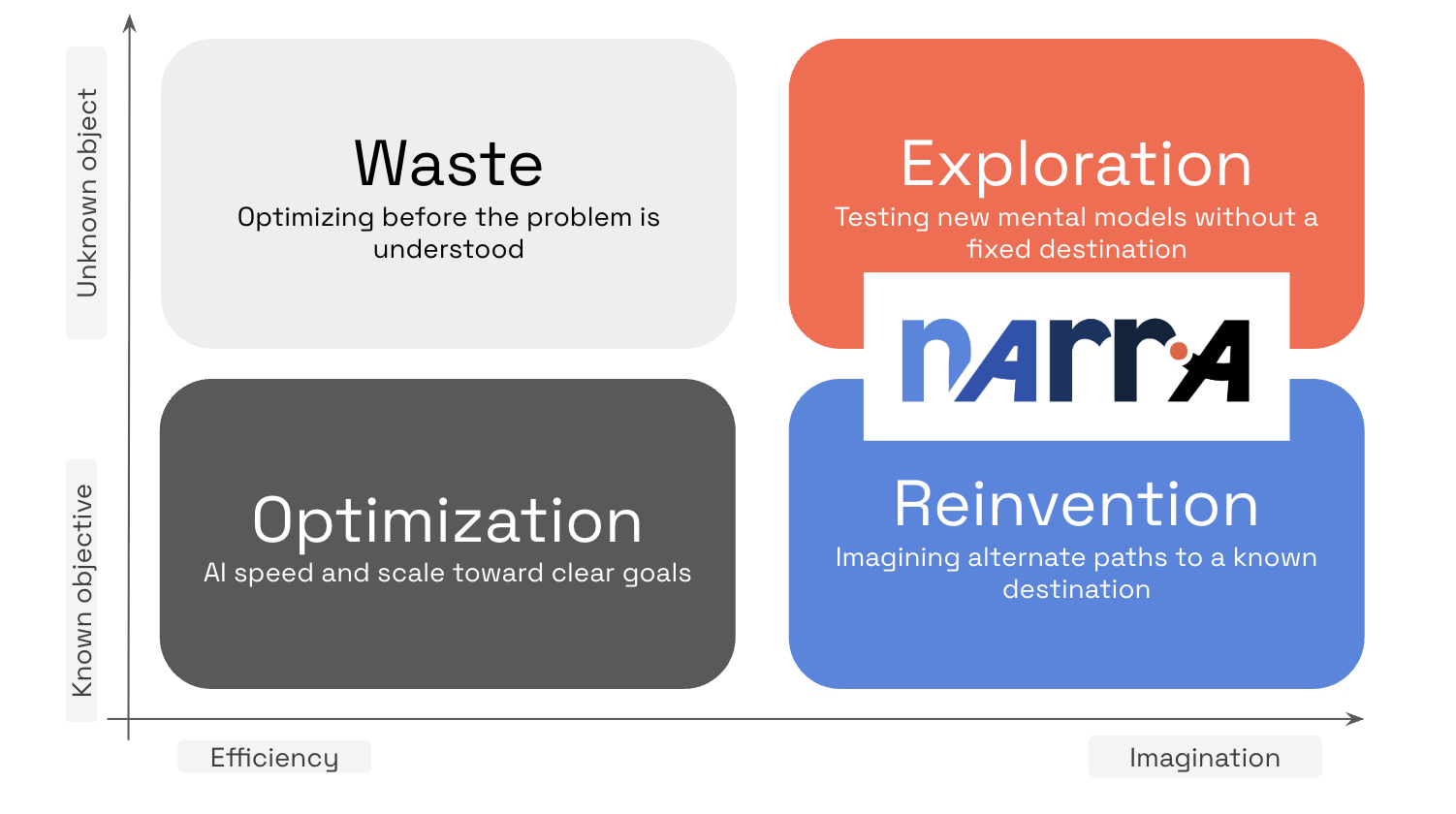 Si l’objectif est connu mais que les manières d’y arriver ont trop été éprouvées et ont besoin de renouveau, l’imagination, assistée par l’IA, permet d’entrevoir des chemins alternatifs